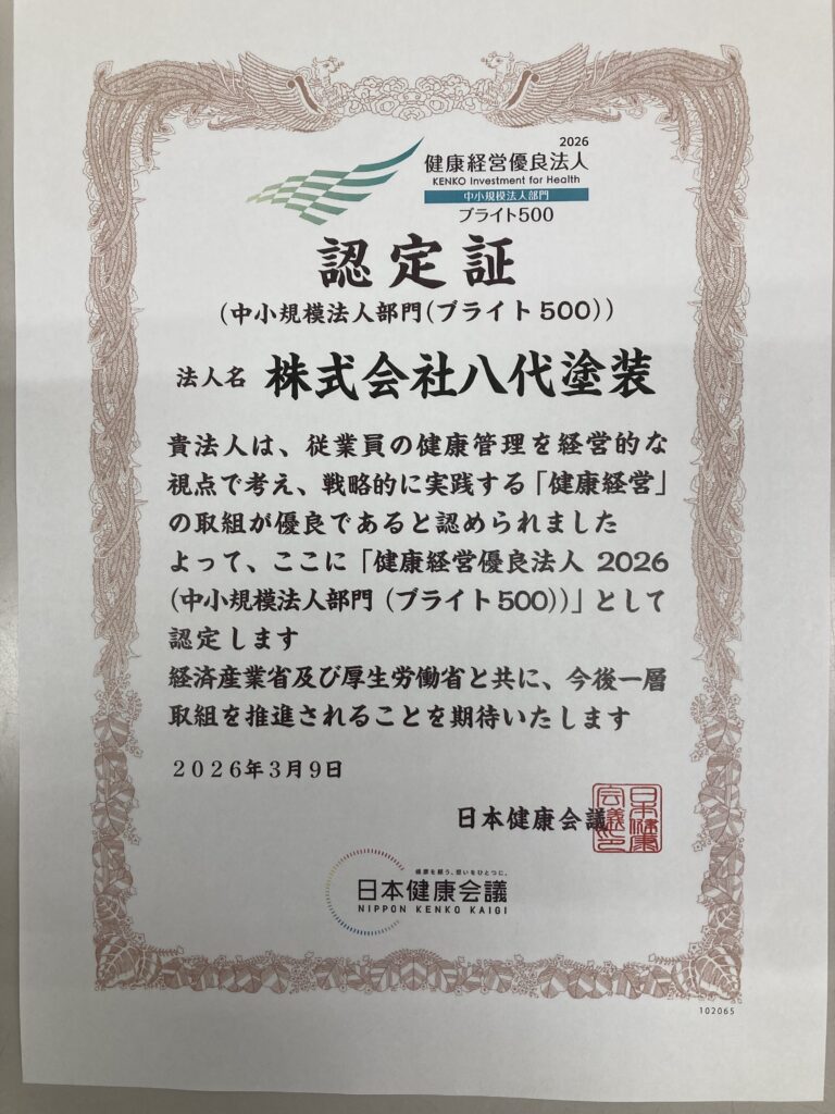 2026年3月9日、健康経営優良法人(中小規模法人部門ブライト500)認定いただきました。